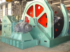主轴装置包括:主轴、齿轮、卷筒、制动轮、轴承座极轴承等。减速器是采用球面蜗轮副减速,加有yi级变速齿轮。转换变速手柄快慢速位置,可变换快慢两种速度。工作制动器采用瓦块式制动器,启动电机,电动液压推动器松闸,停止电机则弹簧力制动。全制动器为瓦块浮动式,靠重锤下落进行制动,电动液压推动器松闸。
